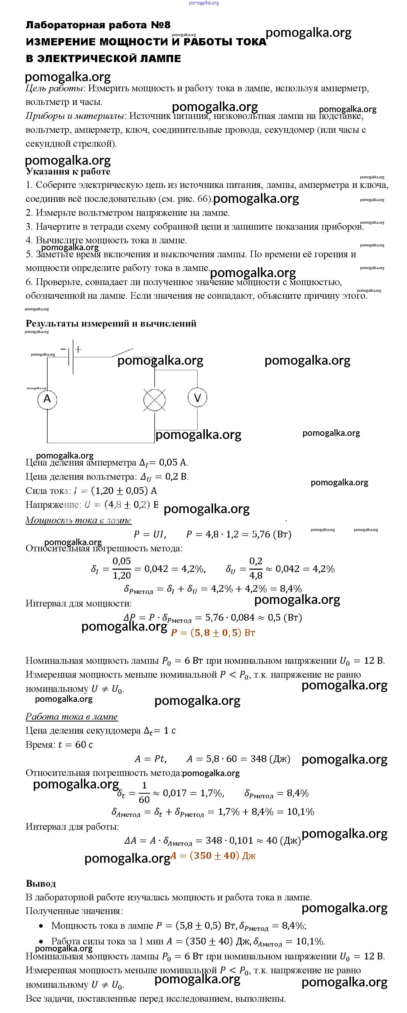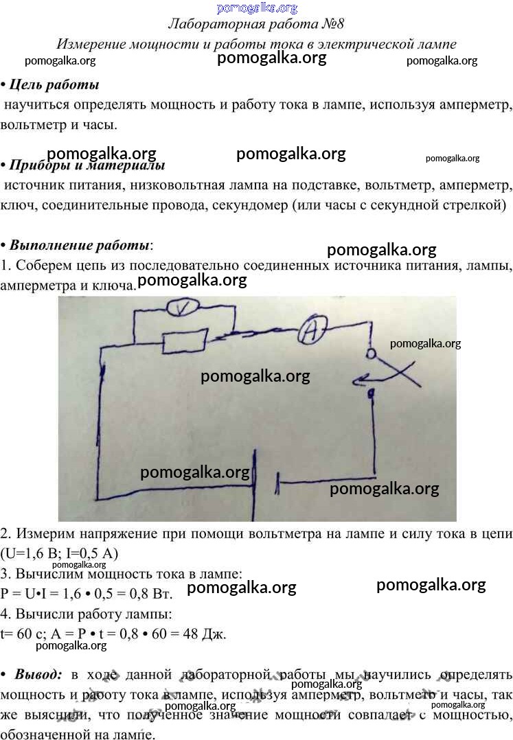 Готовые ответы - Физика 8 класс Перышкин А.В. - лабораторная работа новое издание ЛР-8