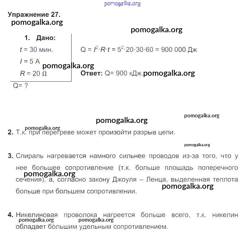 Готовые ответы - Физика 8 класс Перышкин А.В. - упражнение старое издание 27