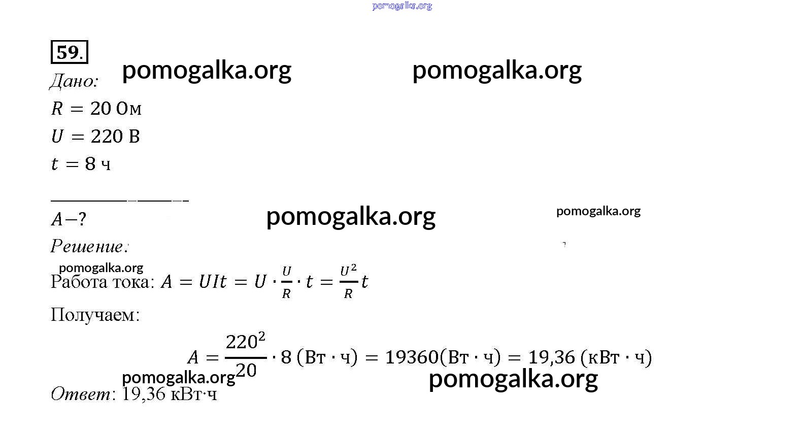Готовые ответы - Физика 8 класс Перышкин А.В. - задача новое издание 59