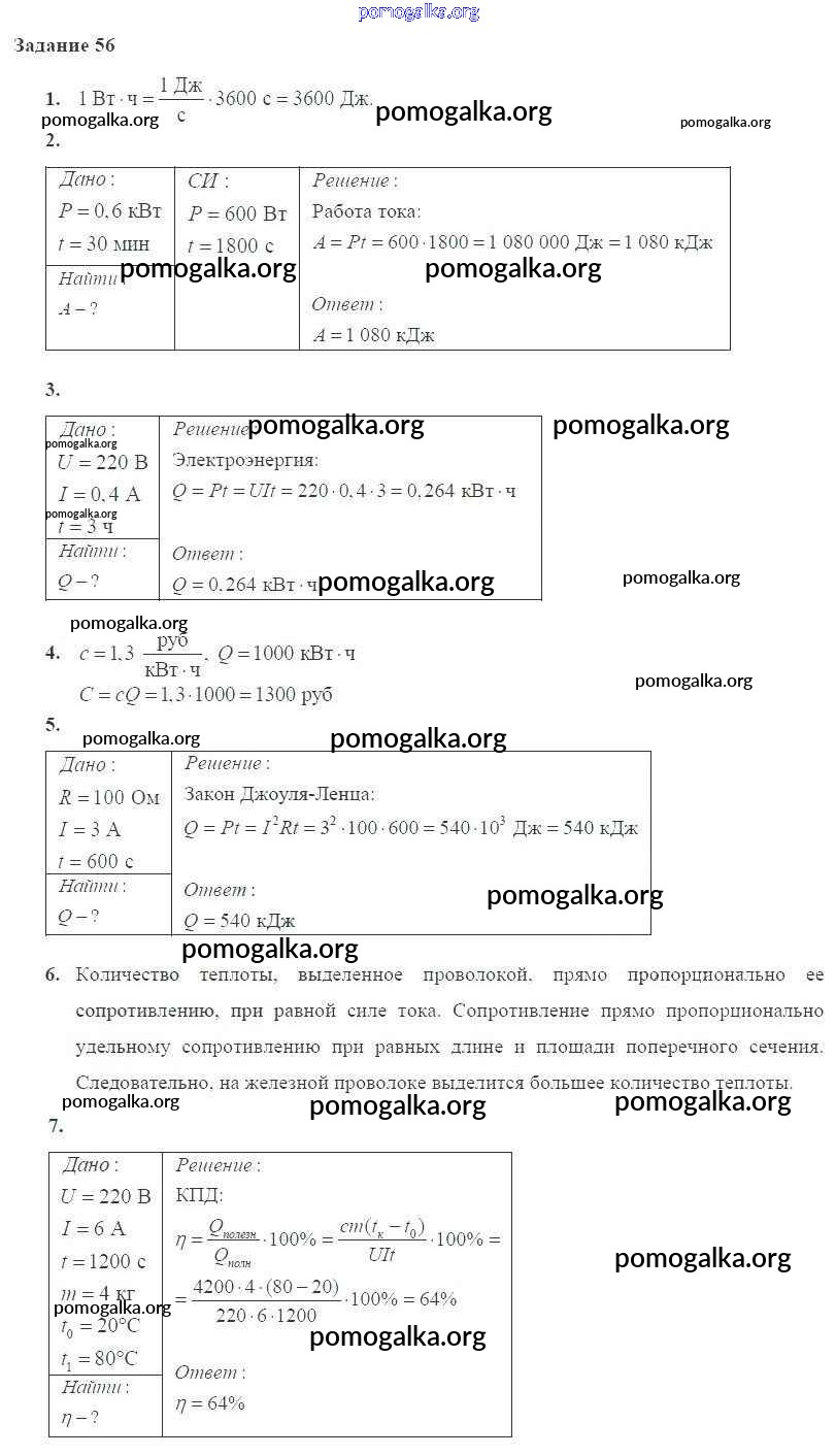 Готовые ответы - Физика 8 класс Пурышева Н.С. - задание 56
