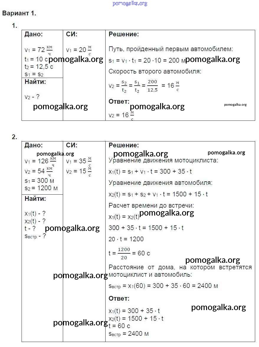 Готовые ответы - Физика 9 класс дидактические материалы Марон А.Е. (к уч. Перышкина А.В.) - ср-2. вариант самостоятельная работа 1