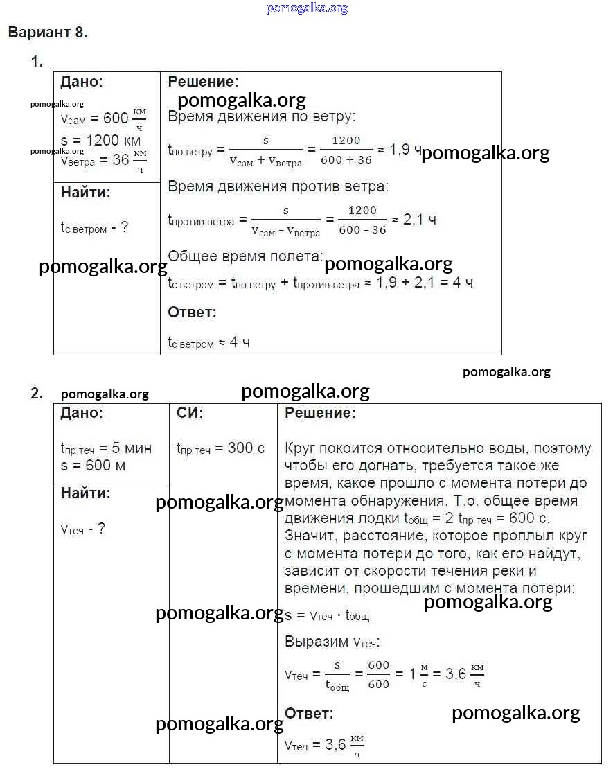 Готовые ответы - Физика 9 класс дидактические материалы Марон А.Е. (к уч. Перышкина А.В.) - ср-4. вариант самостоятельная работа 8