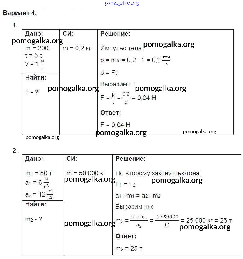Готовые ответы - Физика 9 класс дидактические материалы Марон А.Е. (к уч. Перышкина А.В.) - ср-7. вариант самостоятельная работа 4