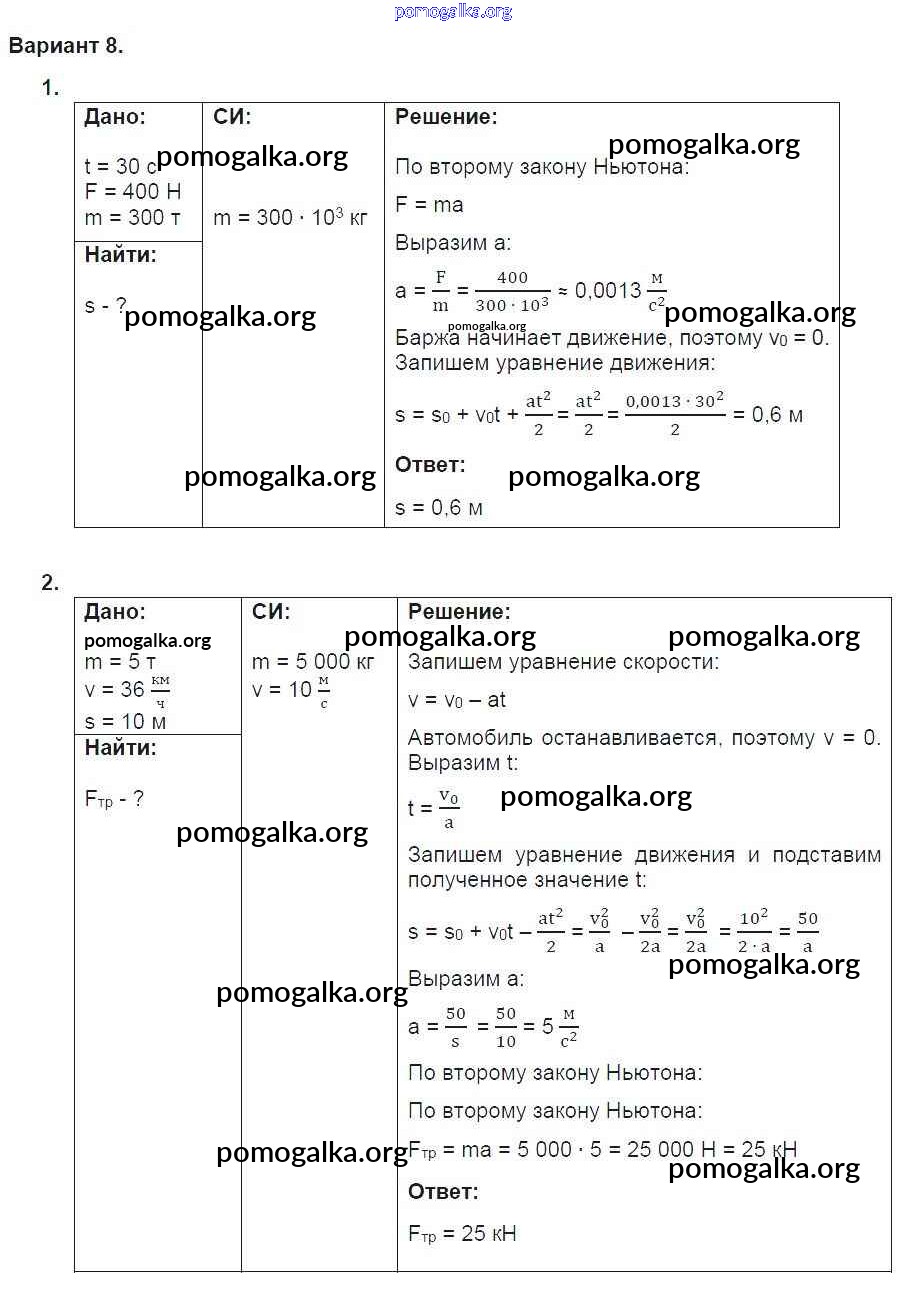 Готовые ответы - Физика 9 класс дидактические материалы Марон А.Е. (к уч. Перышкина А.В.) - ср-7. вариант самостоятельная работа 8