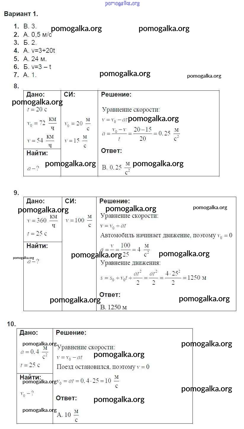 Готовые ответы - Физика 9 класс дидактические материалы Марон А.Е. (к уч. Перышкина А.В.) - тест 2. вариант тест для самоконтроля 1
