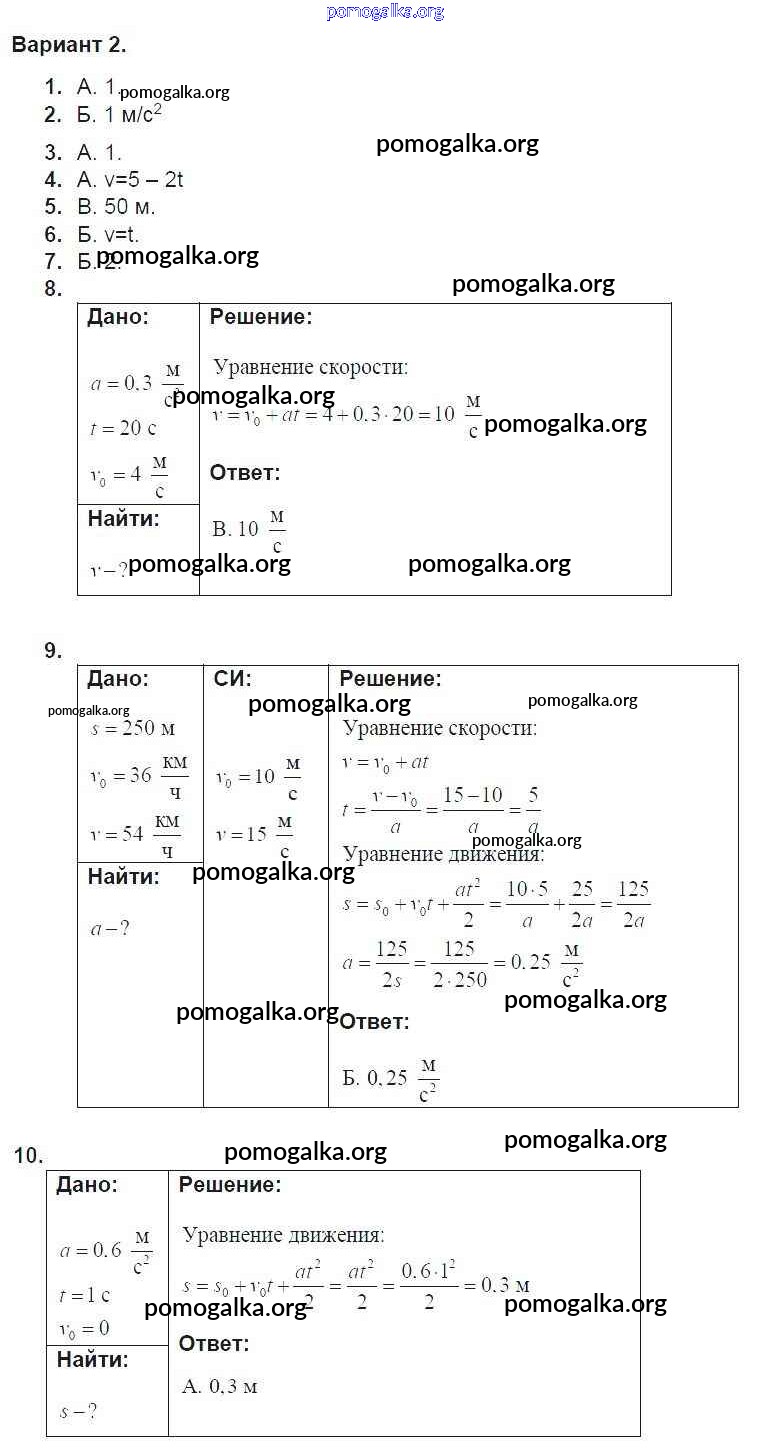 Готовые ответы - Физика 9 класс дидактические материалы Марон А.Е. (к уч. Перышкина А.В.) - тест 2. вариант тест для самоконтроля 2