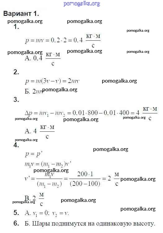 Готовые ответы - Физика 9 класс дидактические материалы Марон А.Е. (к уч. Перышкина А.В.) - тест 6. вариант тест для самоконтроля 1