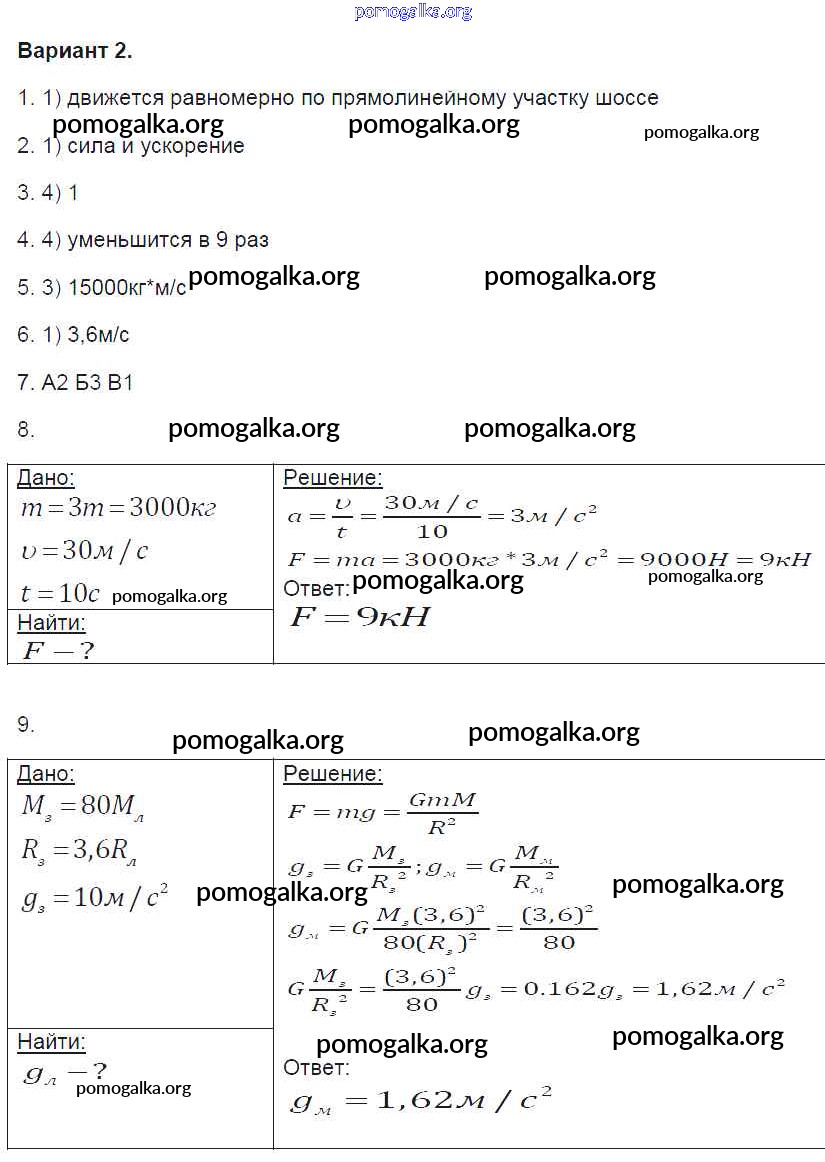 Готовые ответы - Физика 9 класс контрольные и самостоятельные работы Громцева О.И. ( к новому уч. Перышкина А.В.) - 1. вариант глава 1 2