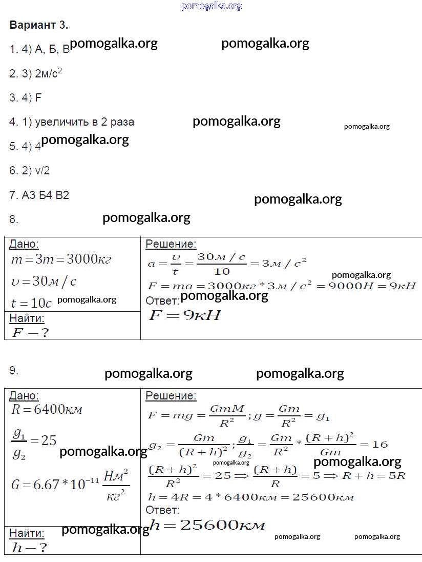Готовые ответы - Физика 9 класс контрольные и самостоятельные работы Громцева О.И. ( к новому уч. Перышкина А.В.) - 1. вариант глава 1 3