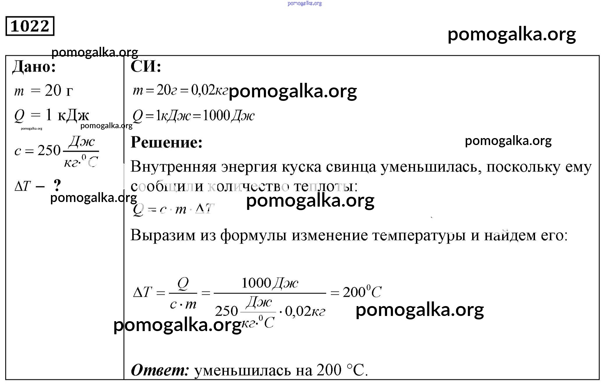 Готовые ответы - Физика 7-9 класс Сборник задач Лукашик В.И. - задание № 1022