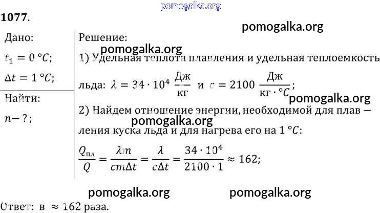 Готовые ответы - Физика 7-9 класс Сборник задач Лукашик В.И. - задание № 1077