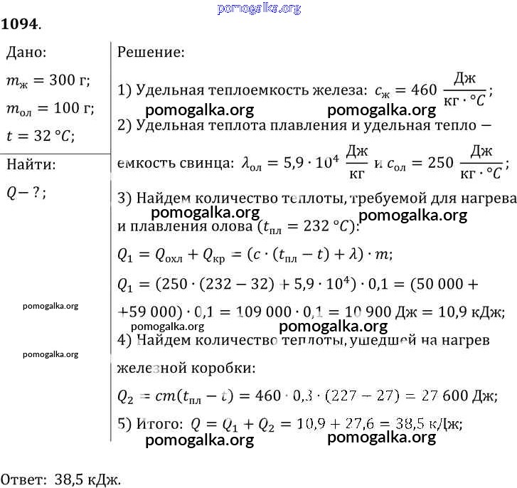Готовые ответы - Физика 7-9 класс Сборник задач Лукашик В.И. - задание № 1094