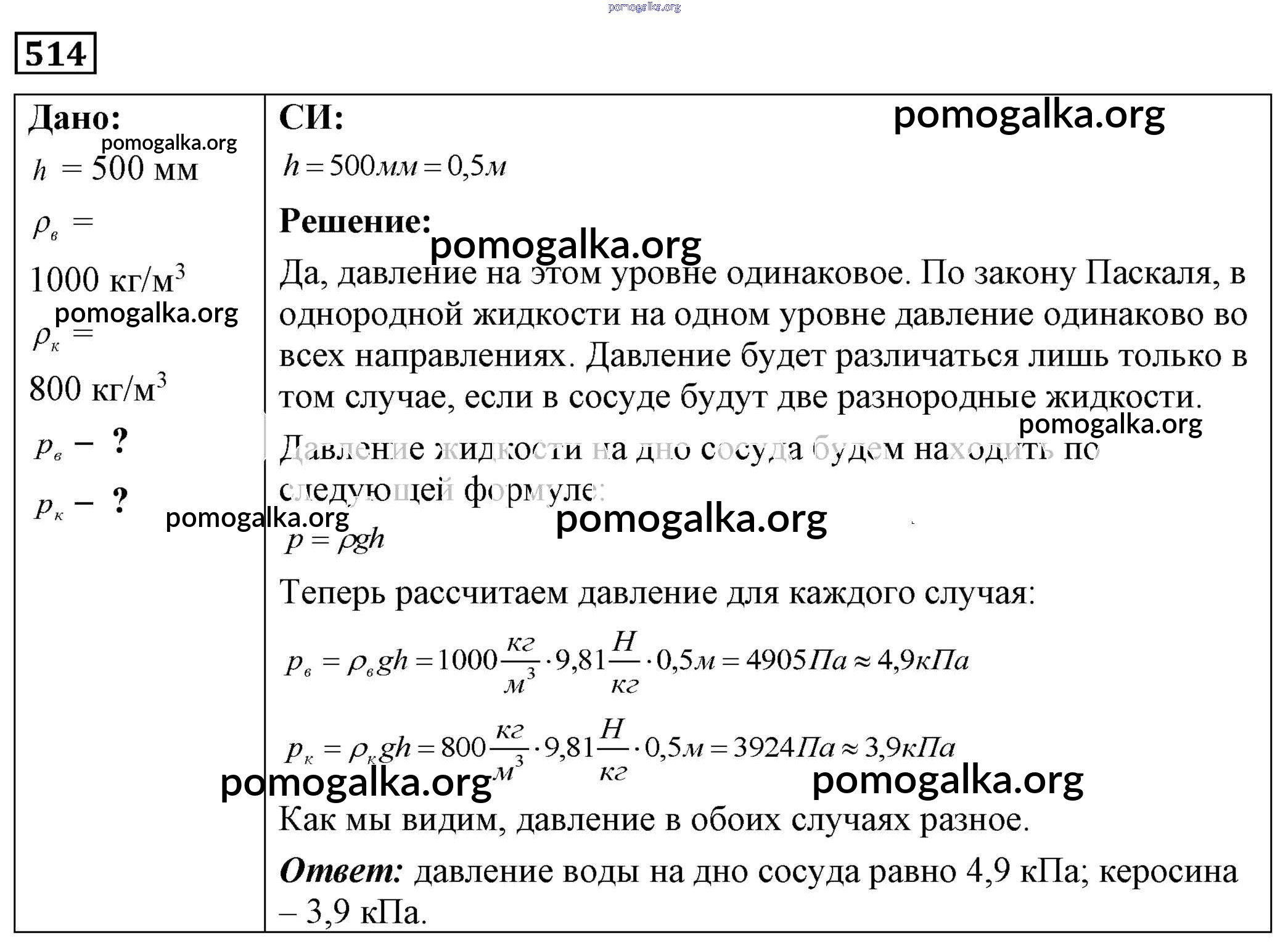 Готовые ответы - Физика 7-9 класс Сборник задач Лукашик В.И. - задание № 514