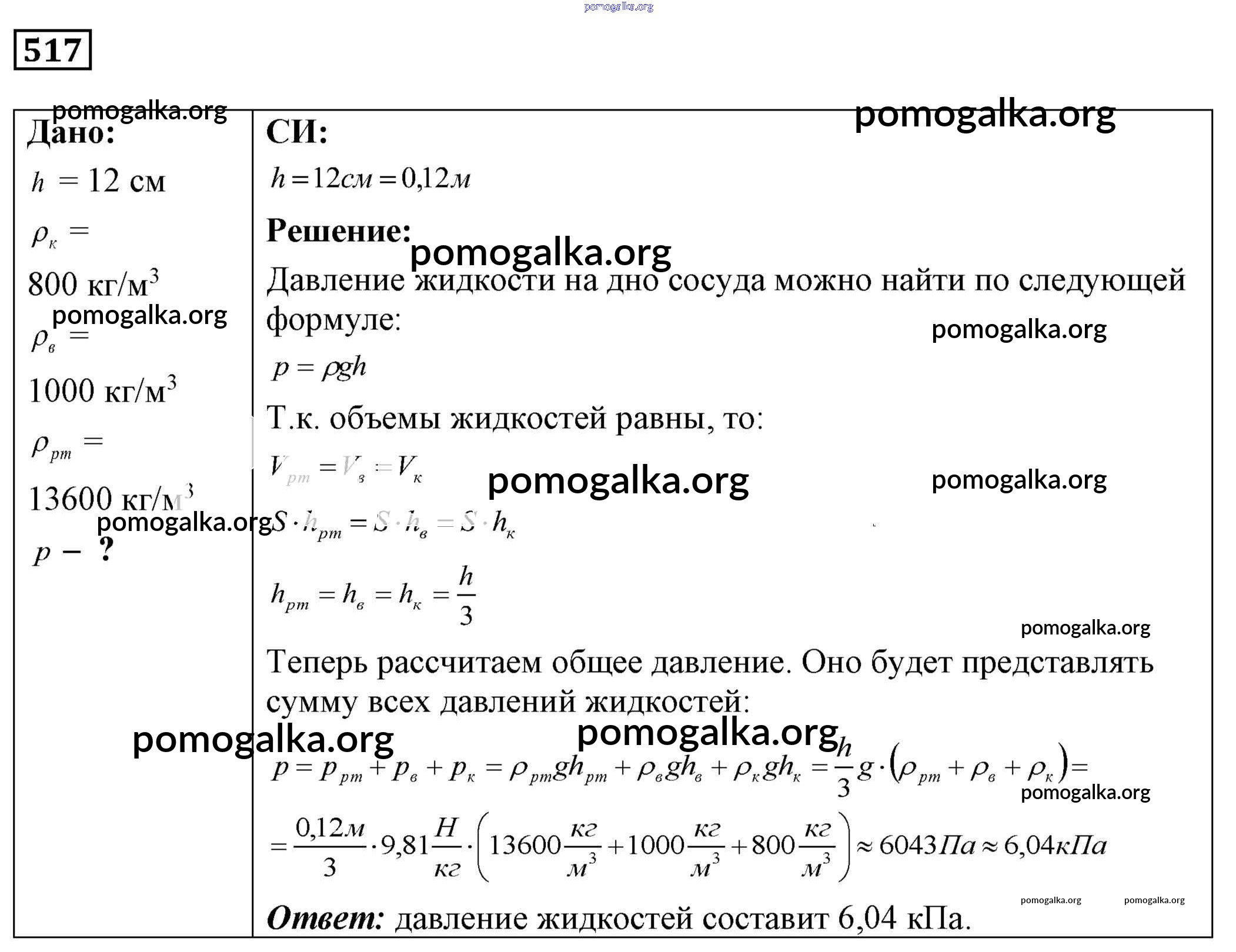 Готовые ответы - Физика 7-9 класс Сборник задач Лукашик В.И. - задание № 517