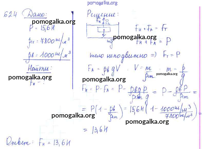 Готовые ответы - Физика 7-9 класс Сборник задач Лукашик В.И. - задание № 624