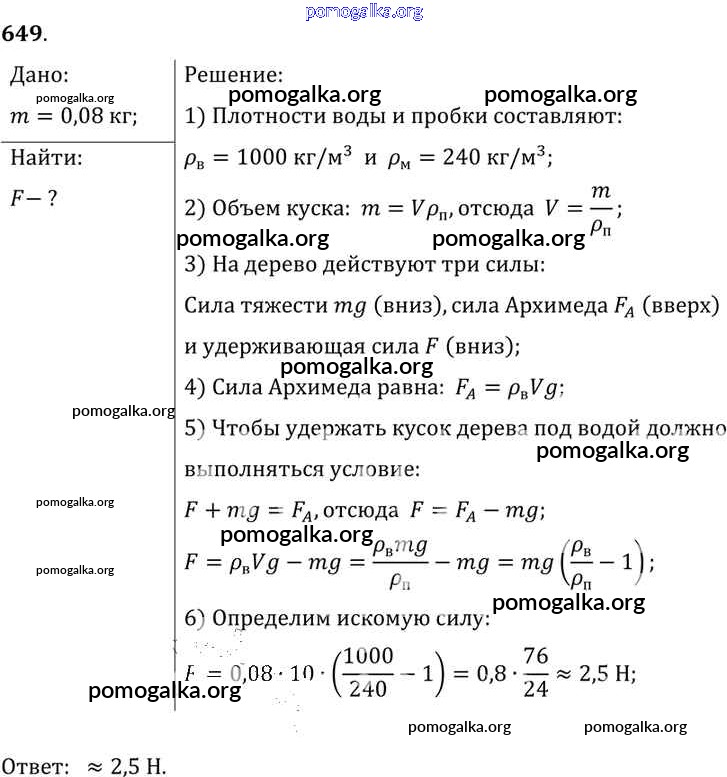 Готовые ответы - Физика 7-9 класс Сборник задач Лукашик В.И. - задание № 649