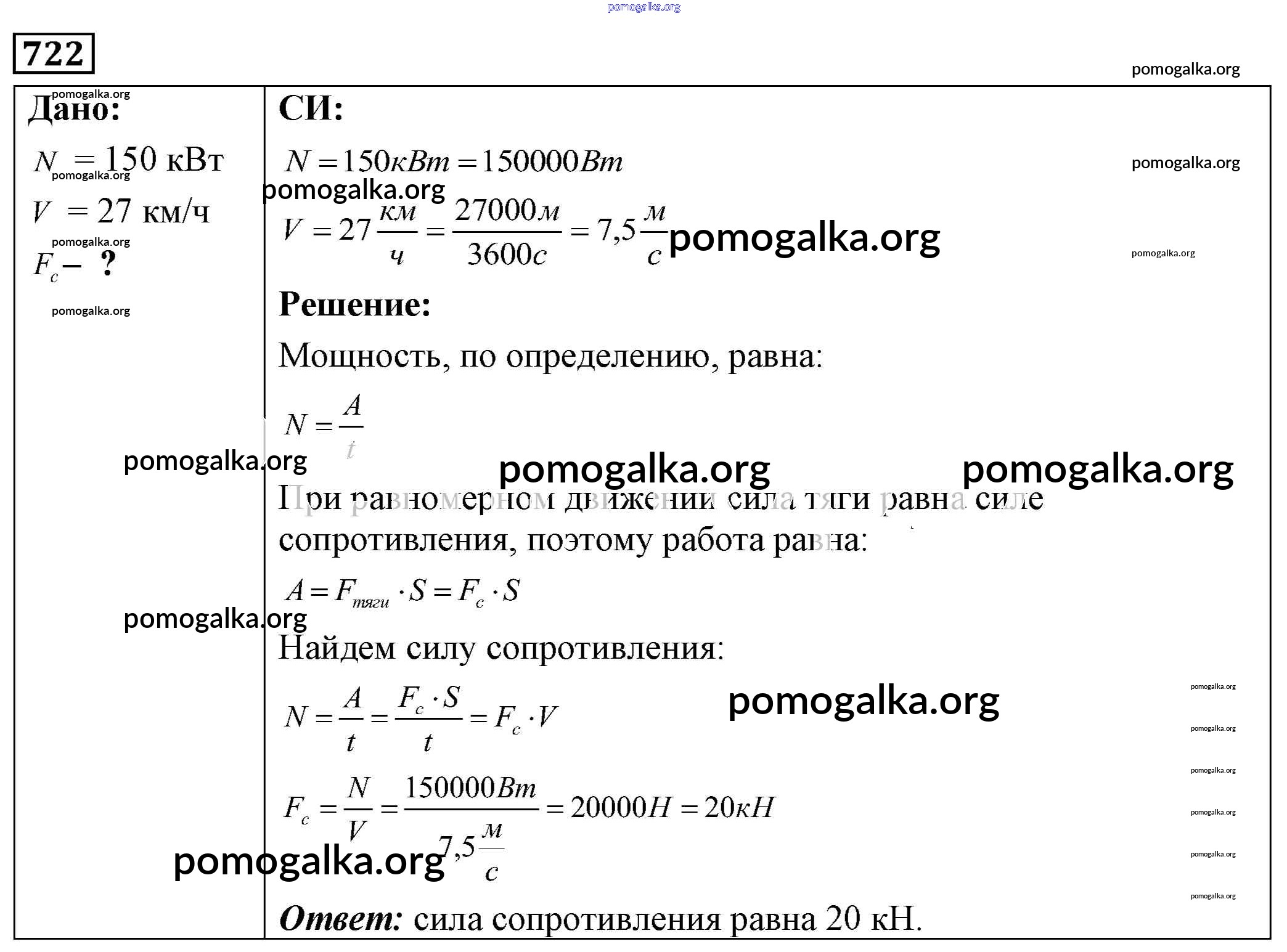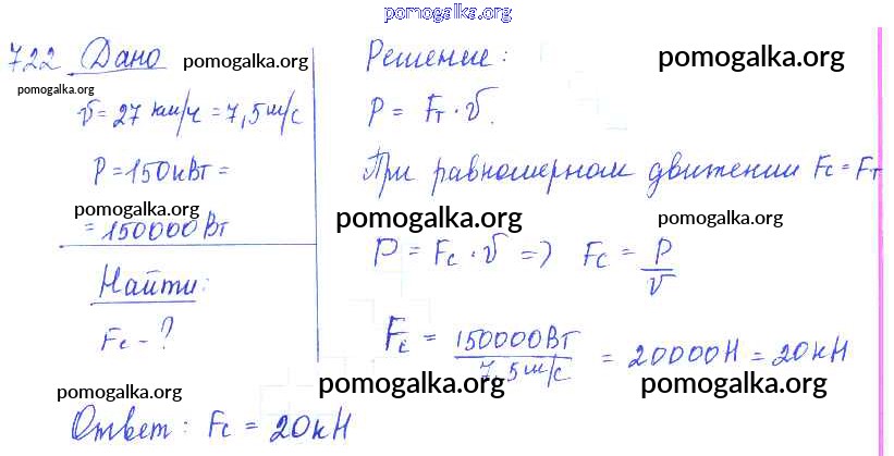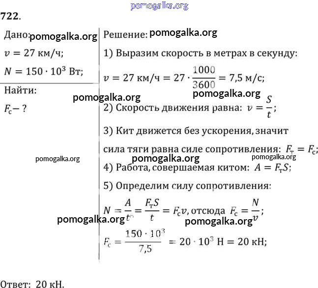 Готовые ответы - Физика 7-9 класс Сборник задач Лукашик В.И. - задание № 722