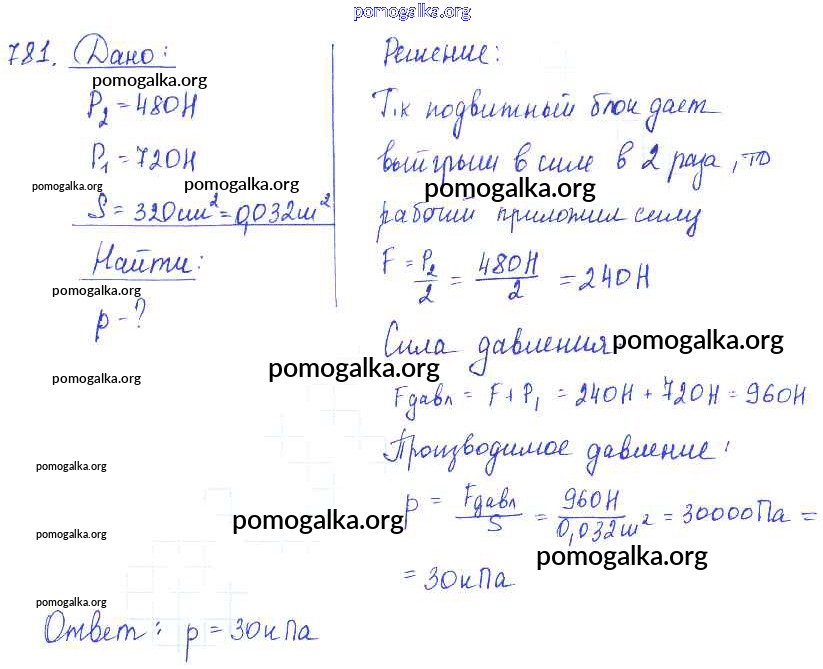 Готовые ответы - Физика 7-9 класс Сборник задач Лукашик В.И. - задание № 781