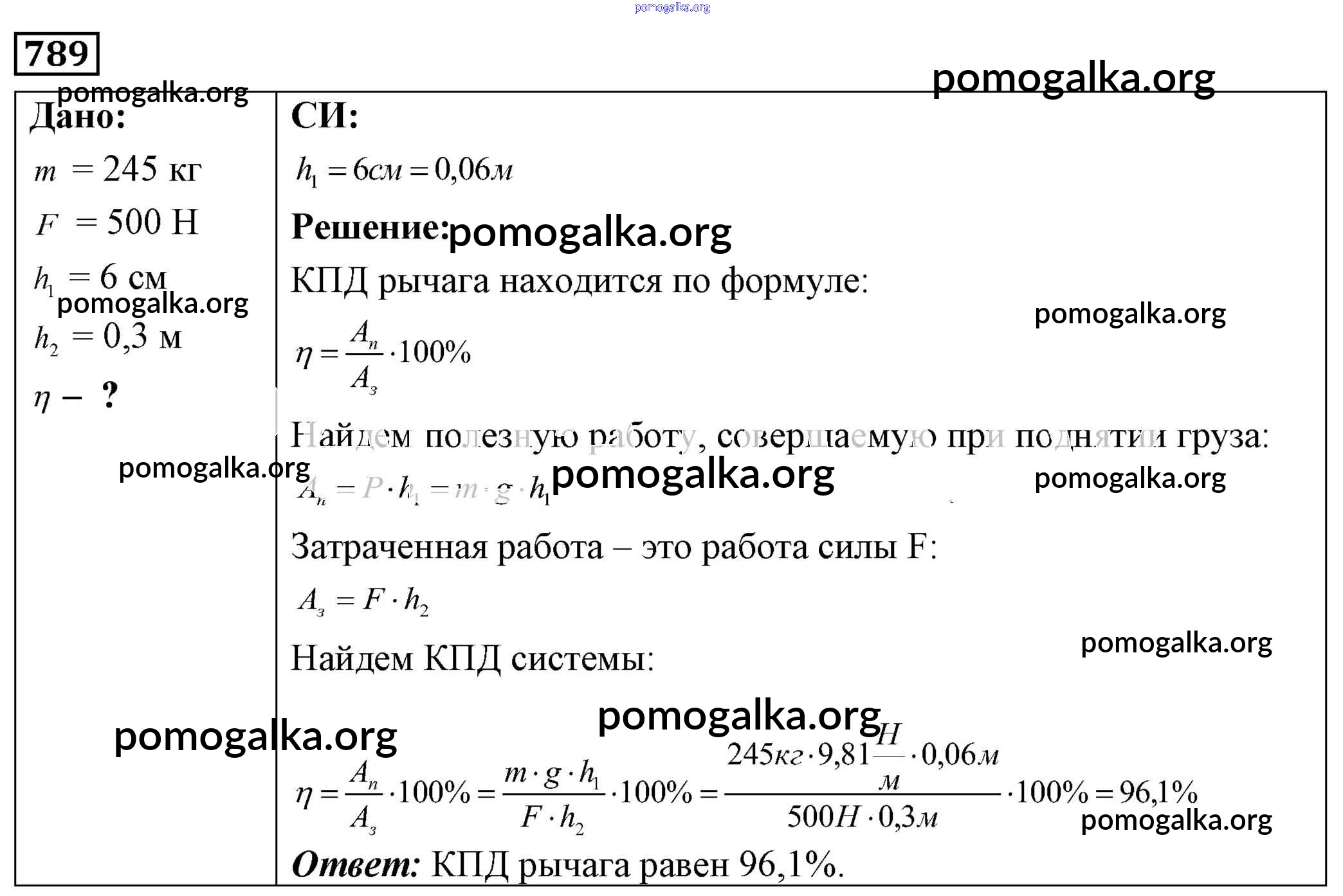 Готовые ответы - Физика 7-9 класс Сборник задач Лукашик В.И. - задание № 789