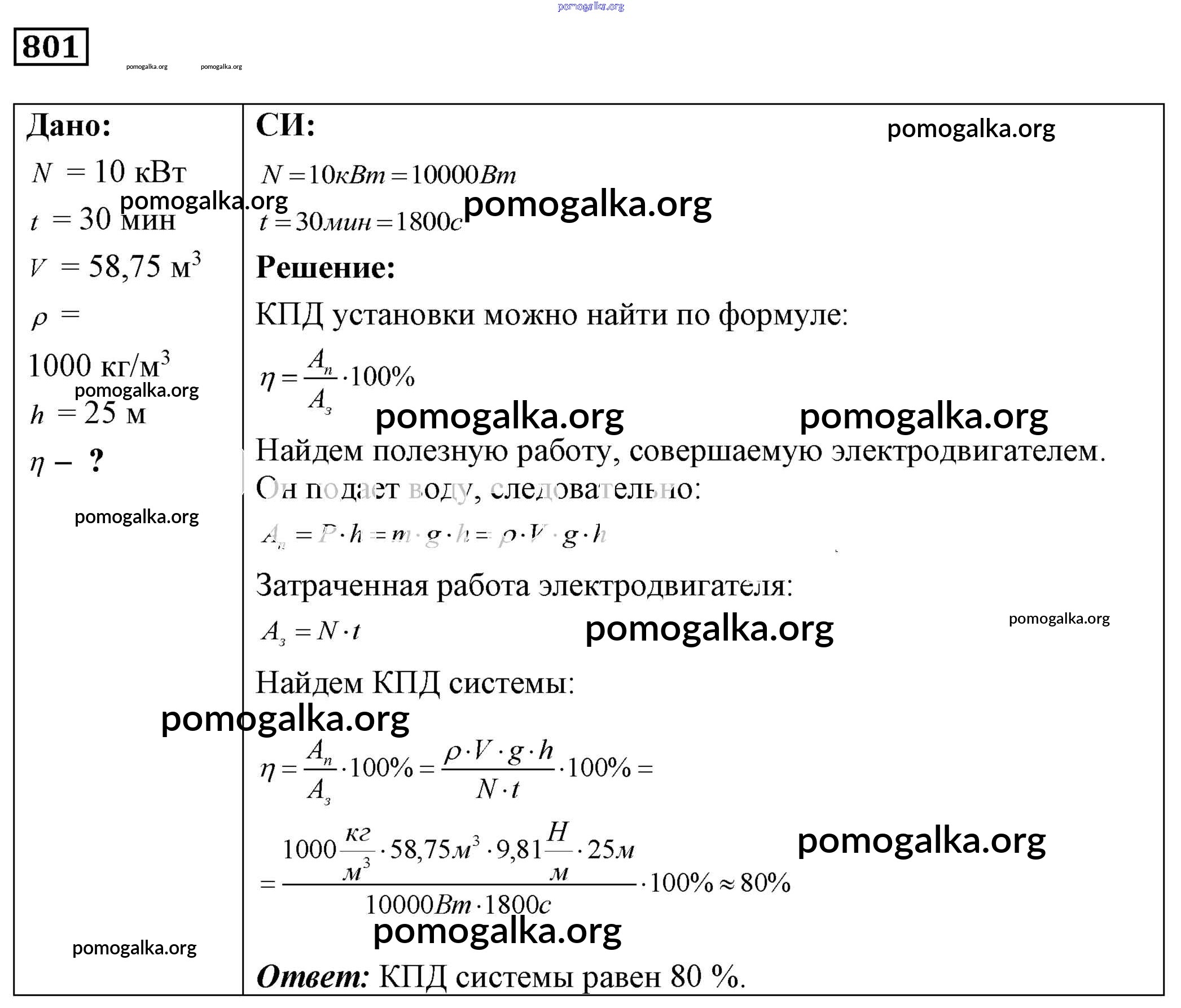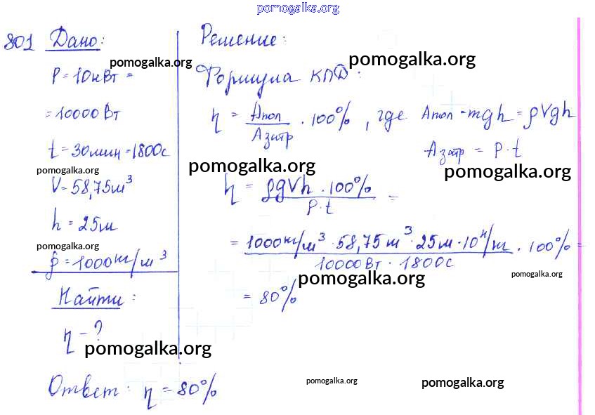 Готовые ответы - Физика 7-9 класс Сборник задач Лукашик В.И. - задание № 801