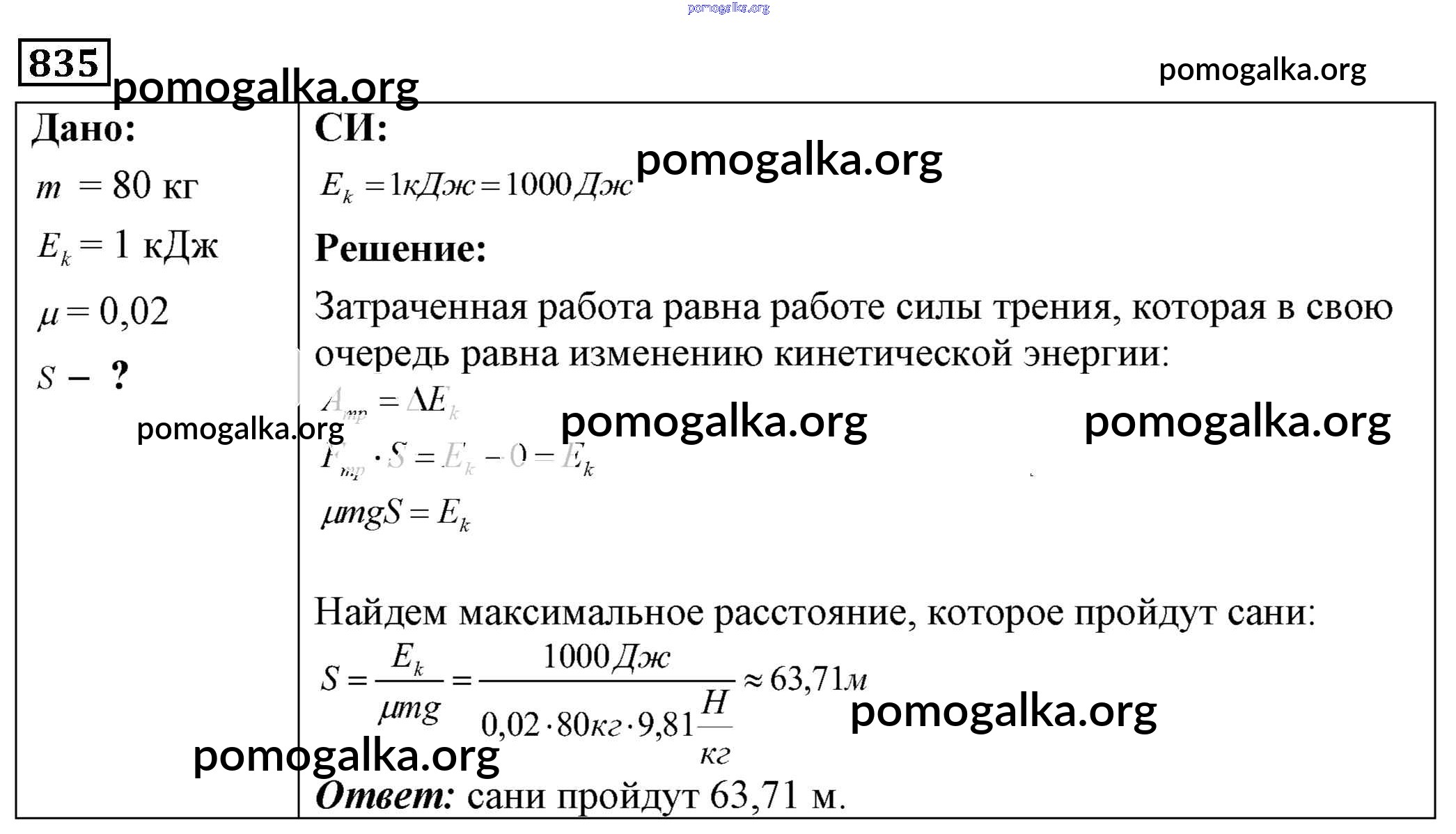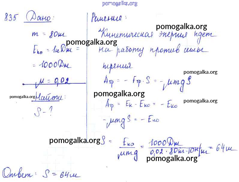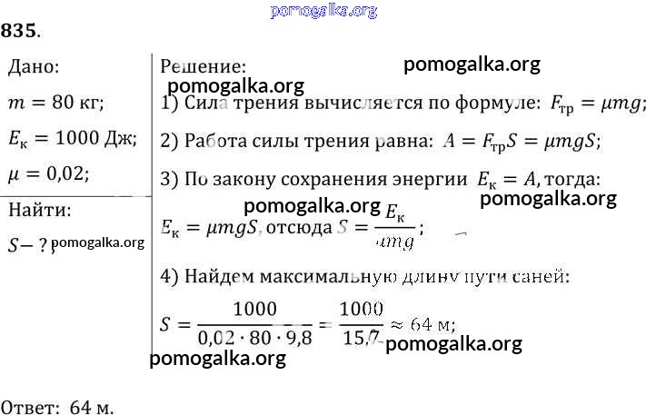 Готовые ответы - Физика 7-9 класс Сборник задач Лукашик В.И. - задание № 835