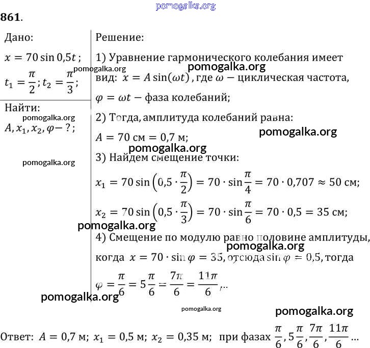 Готовые ответы - Физика 7-9 класс Сборник задач Лукашик В.И. - задание № 861