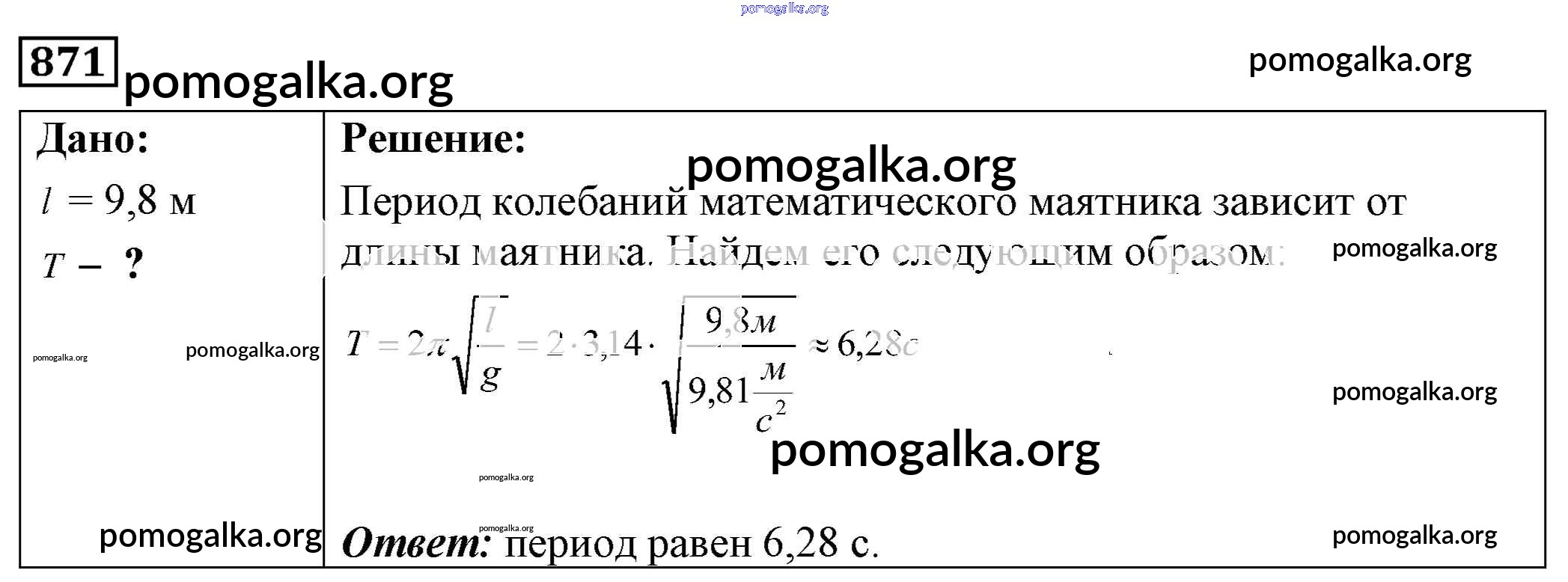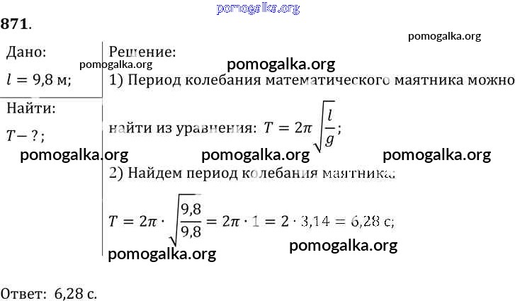 Готовые ответы - Физика 7-9 класс Сборник задач Лукашик В.И. - задание № 871