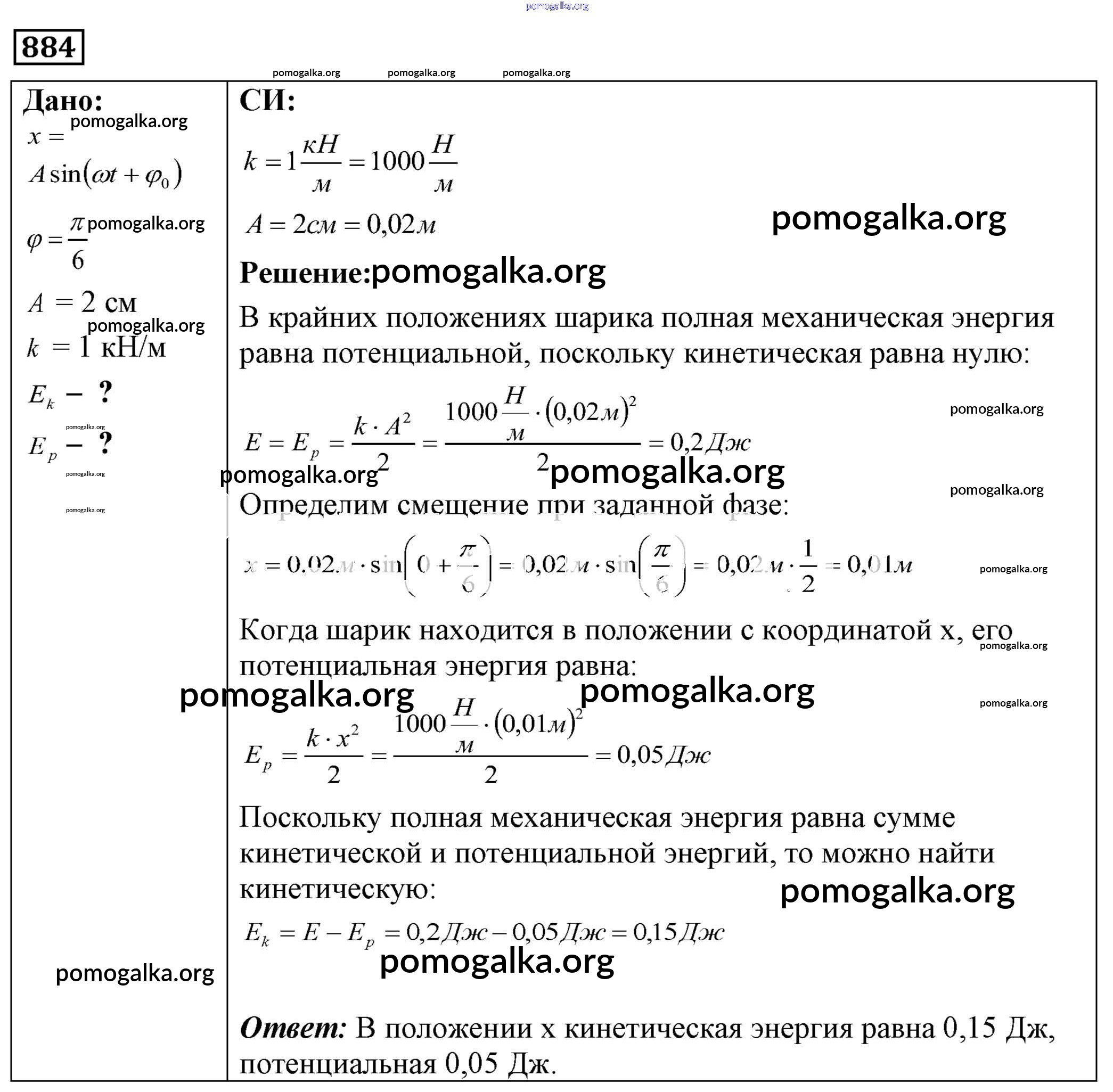 Готовые ответы - Физика 7-9 класс Сборник задач Лукашик В.И. - задание № 884