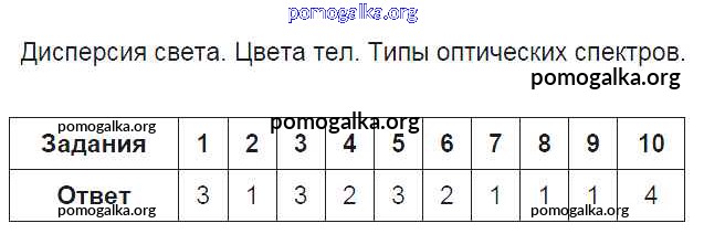 Готовые ответы - Физика 9 класс тесты Громцева О.И. (к уч. Перышкина А.В.) - глава 3 Дисперсия света. Цвета тел. Типы оптических спектров