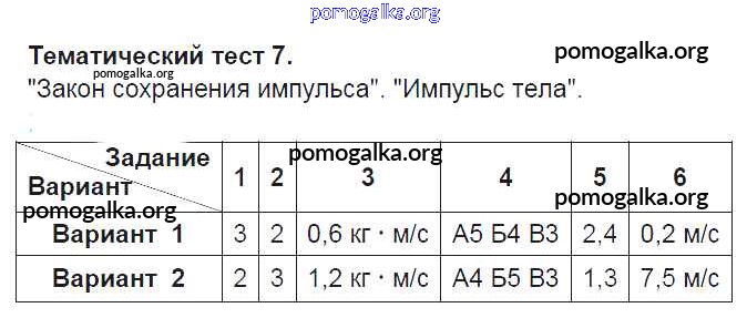 Готовые ответы - Физика 9 класс тесты Слепнева Н.И. (к уч. Перышкина А.В.) - тематический тест 7