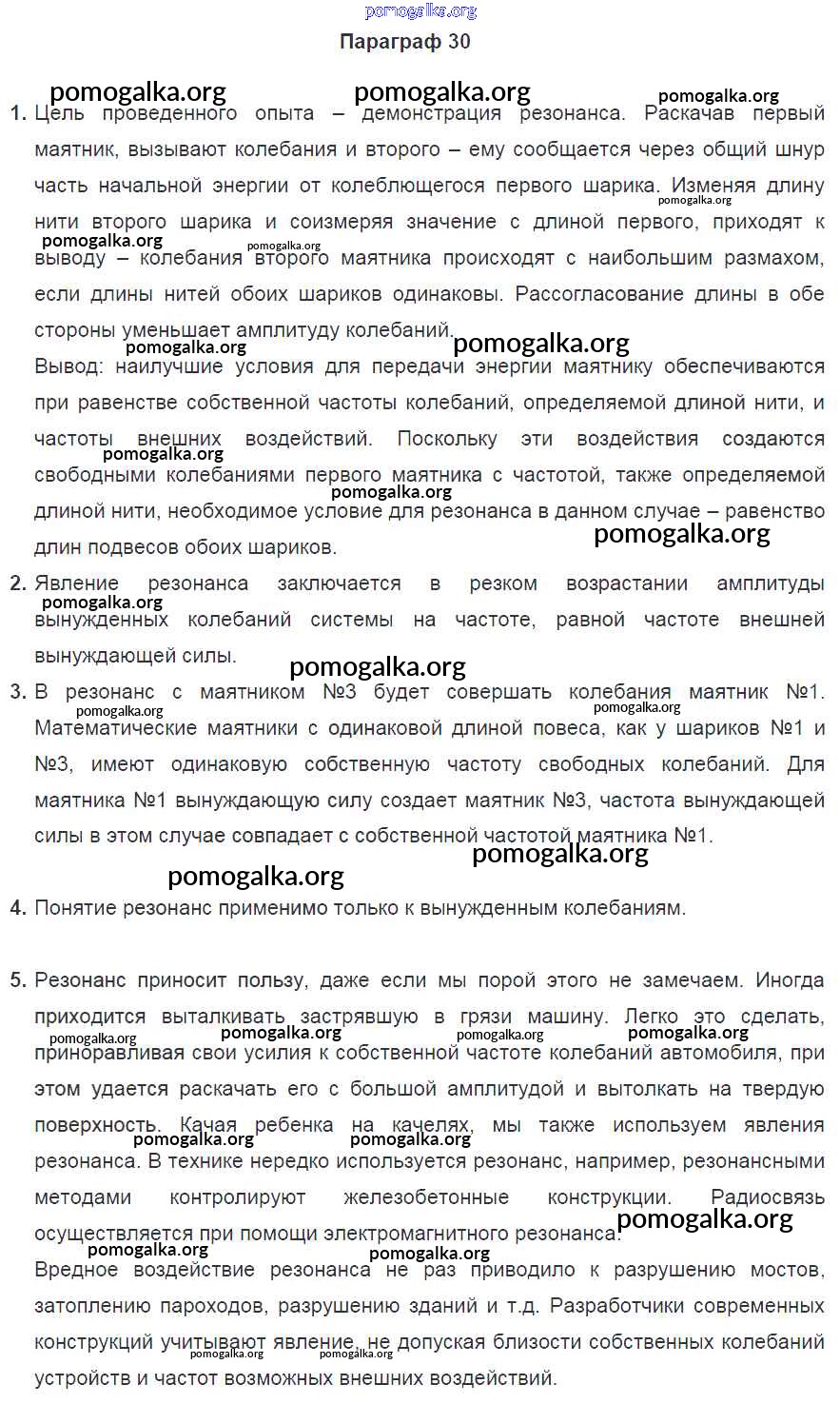 Готовые ответы - Физика 9 класс Перышкин А.В. - параграф старое издание (синий учебник) 30
