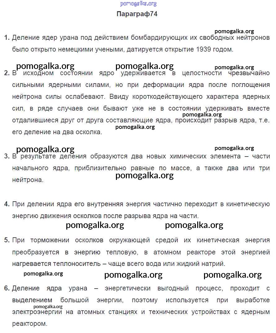 Готовые ответы - Физика 9 класс Перышкин А.В. - параграф старое издание (синий учебник) 74