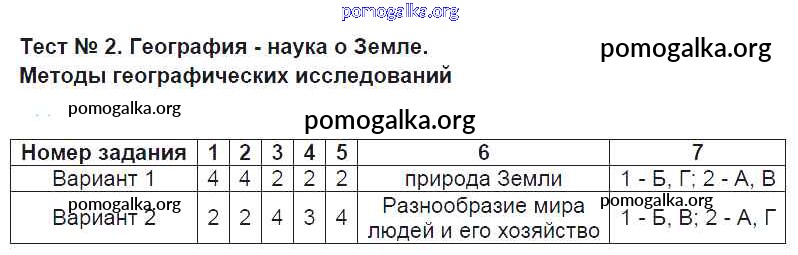 Готовые ответы - География 5 класс КИМ Жижина - тест 2