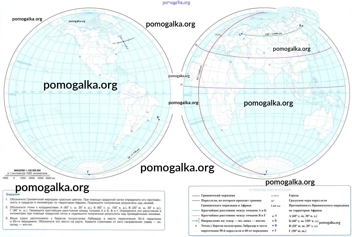 Готовые ответы - География 5 класс контурные карты Петрова М.В. - страницы 6-7 Карта полушарий. Физическая карта