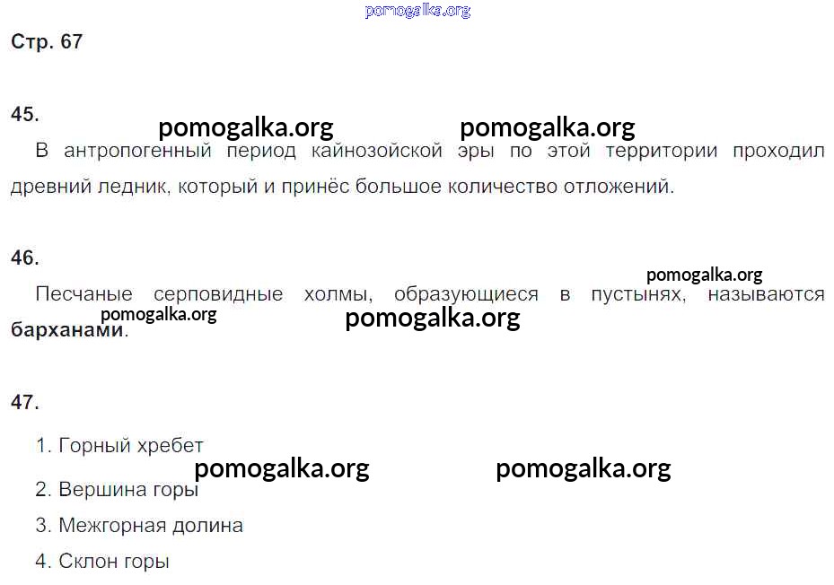 Готовые ответы - География 5 класс рабочая тетрадь Дронов В.П. - страница 67