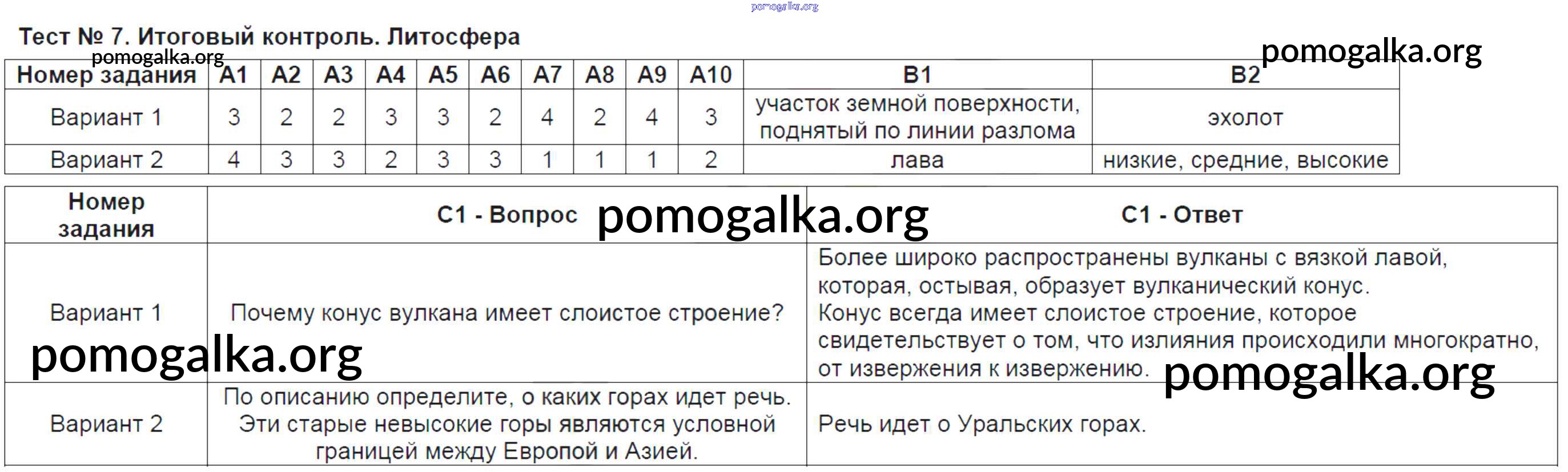 Готовые ответы - География 6 класс контрольно-измерительные материалы Жижина Е.А. - тест 7