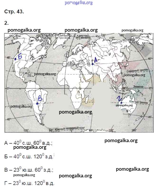 Готовые ответы - География 6 класс рабочая тетрадь Карташева Т.А. (к уч. Герасимовой) - страница 43
