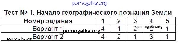Готовые ответы - География 6 класс Тесты Пятунина О.А. (к уч. Летягина) - тест Тест-1. Начало географического познания Земли
