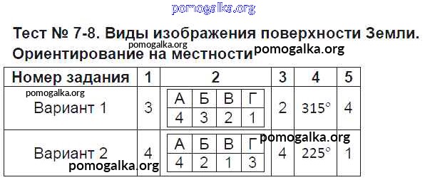 Готовые ответы - География 6 класс Тесты Пятунина О.А. (к уч. Летягина) - тест Тест-7-8. Виды изображения поверхности Земли