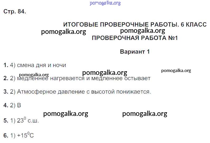 Готовые ответы - География 5-6 классы тетрадь-экзаменатор Барабанов В.В. - страница 84