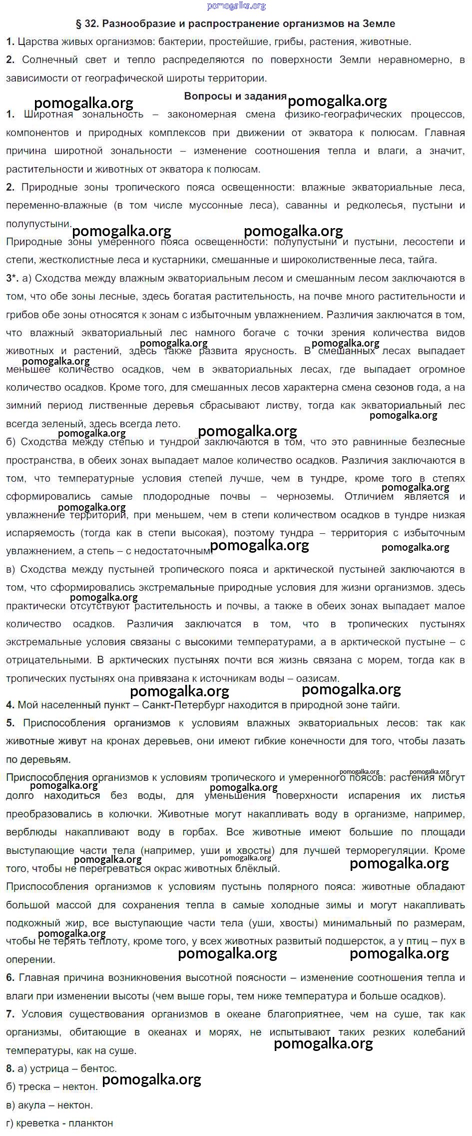 Готовые ответы - География. Начальный курс 6 класс Герасимова Т.В. - параграф §32. Разнообразие и распространение организмов на Земле