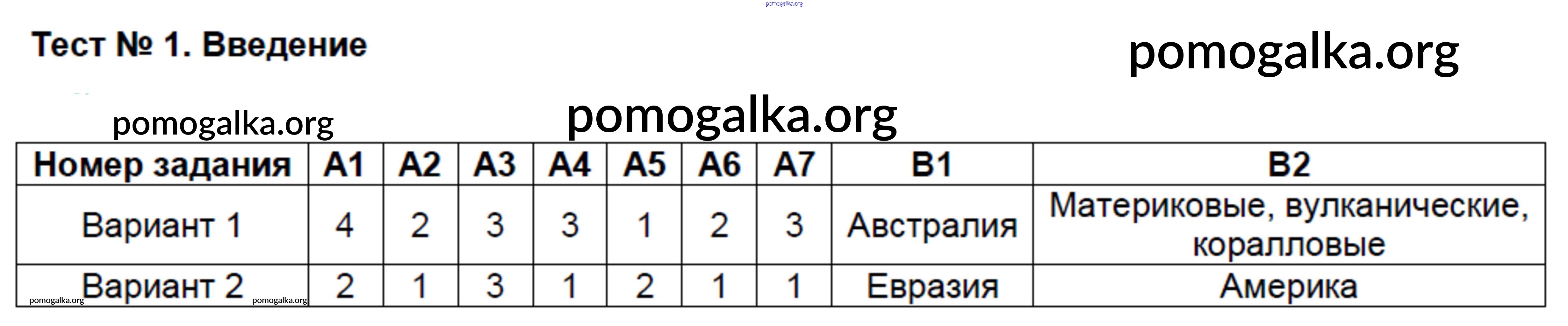 Готовые ответы - География 7 класс КИМ Жижина Е.А. - тест 1