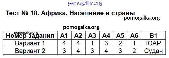 Готовые ответы - География 7 класс КИМ Жижина Е.А. - тест 18