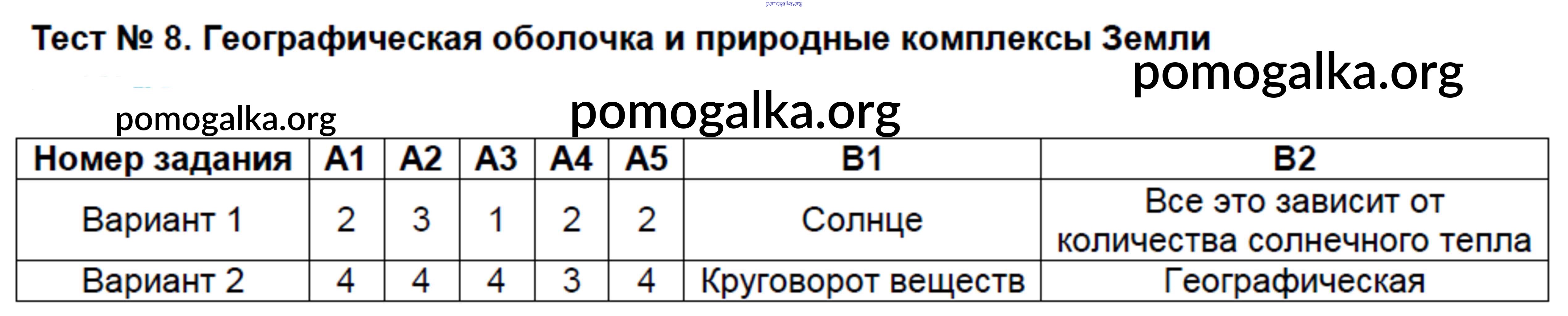 Готовые ответы - География 7 класс КИМ Жижина Е.А. - тест 8