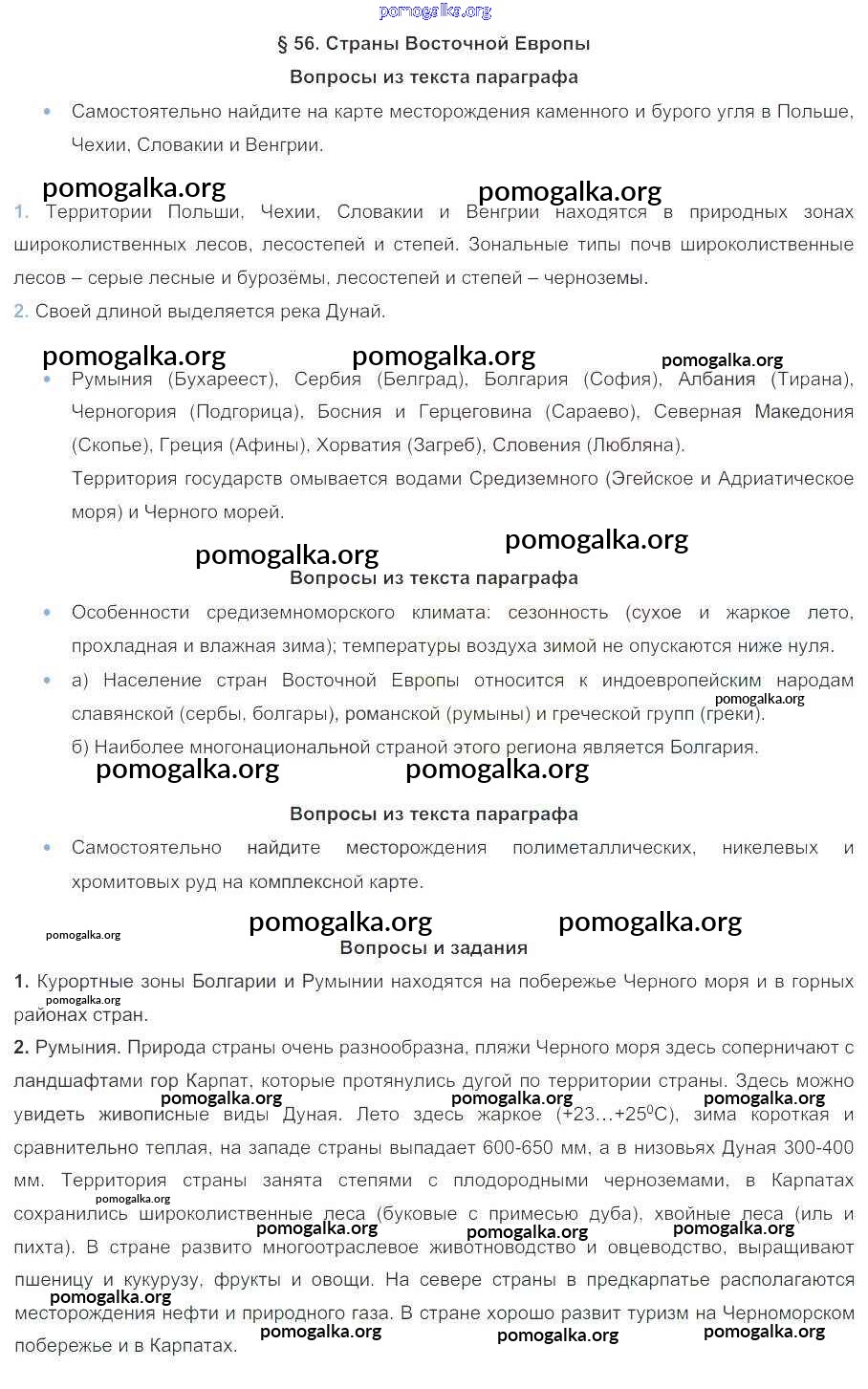 Готовые ответы - География 7 класс Коринская В.А. - параграф 56