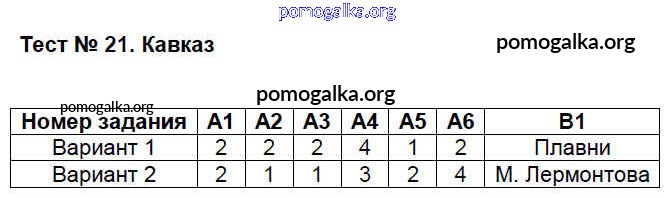 Готовые ответы - География 8 класс КИМ Жижина Е.А. - тест 21