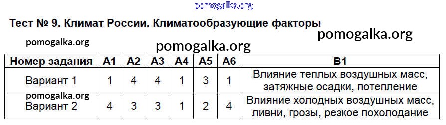 Готовые ответы - География 8 класс КИМ Жижина Е.А. - тест 9