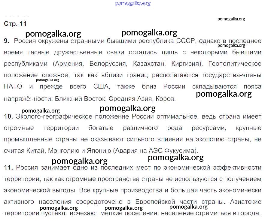 Готовые ответы - География 8 класс рабочая тетрадь Природа Баринова И.И. - страница 11