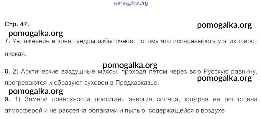 Готовые ответы - География 8 класс рабочая тетрадь Природа Баринова И.И. - страница 47