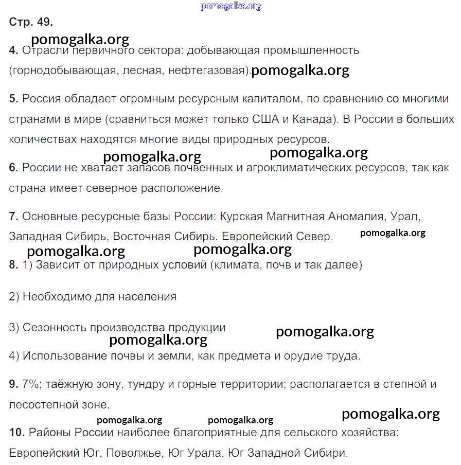 Готовые ответы - География 8 класс рабочая тетрадь Баринова И.И. - страница 49